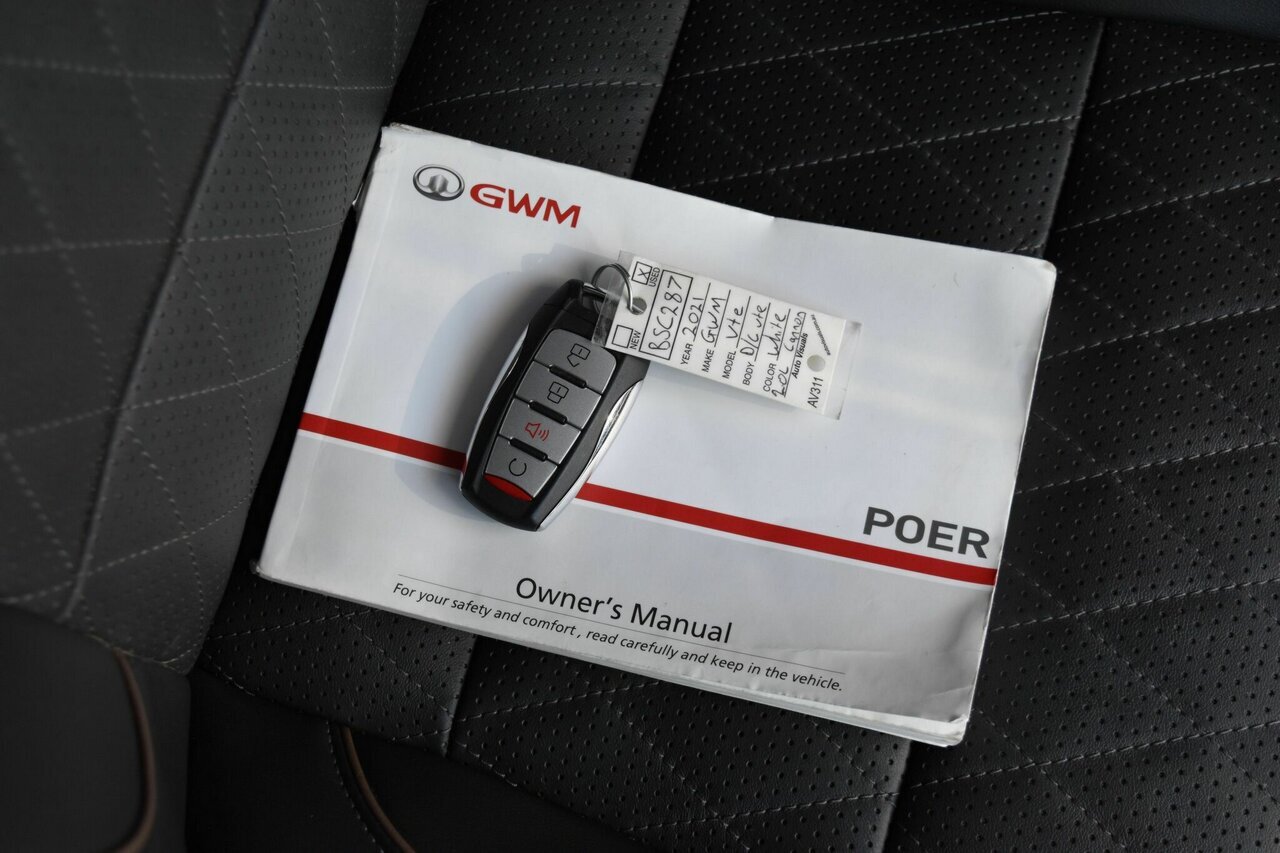 GWM UTE CANNON (4×4) — TOUGH, MODERN DUAL-CAB POWERED BY A 2.0L TURBO DIESEL WITH PROPER 4X4 CAPABILITY. CLEAN WHITE FINISH WITH A COMFORTABLE LEATHER INTERIOR, APPLE CARPLAY AND ANDROID AUTO, PLUS AN I-DRIVE THROTTLE CONTROLLER FOR SHARPER RESPONSE. PRACTICAL, WELL-EQUIPPED, AND READY FOR WORK OR WEEKEND USE. ALL OUR PRE-OWNED VEHICLES COME COMPLETE WITH AN EXTENSIVE PRE-SALE INSPECTION